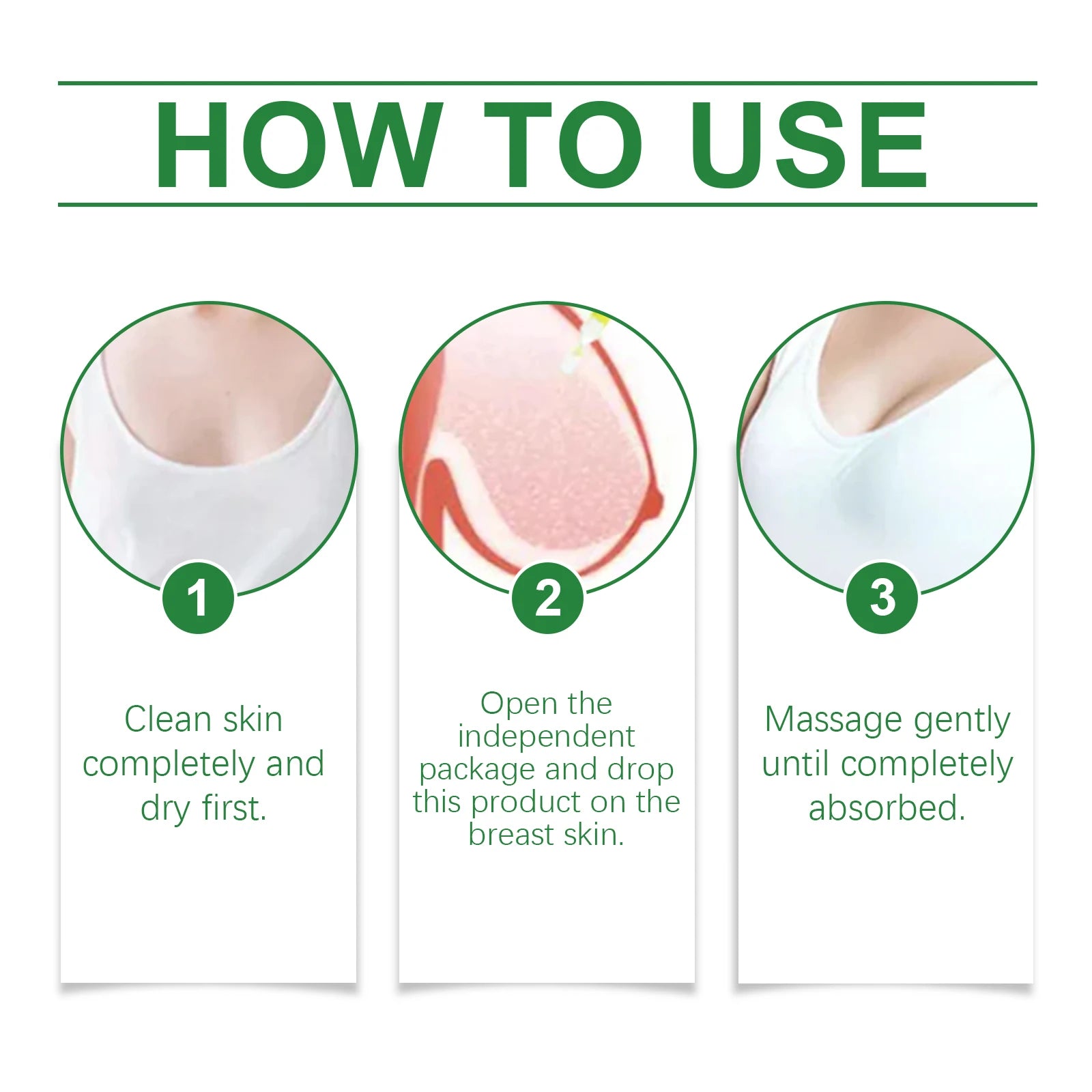 2. Open the independent package and drop this product on the breast skin.